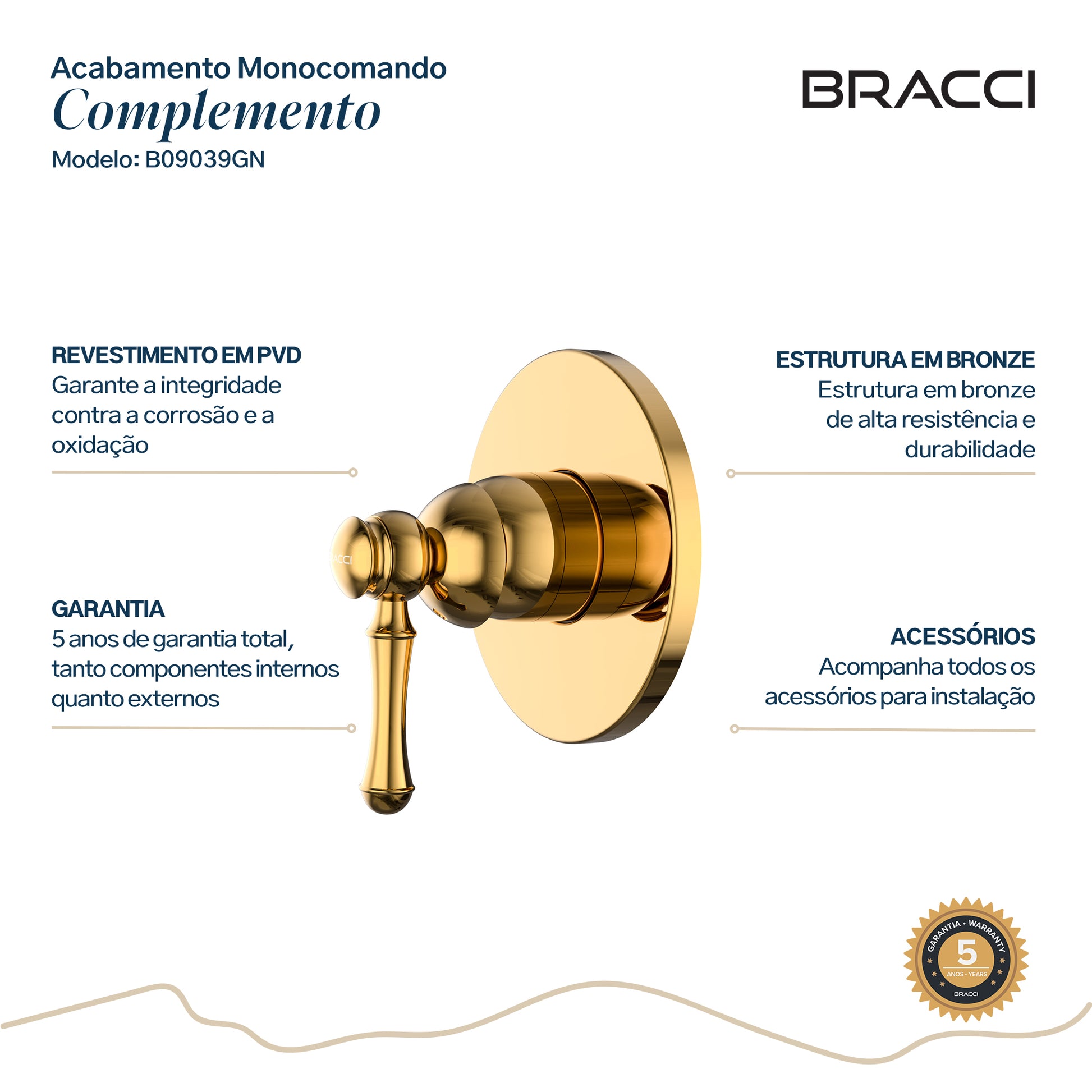 - Produto de alto padrão com garantia de 05 anos, inclusive nos componentes internos.