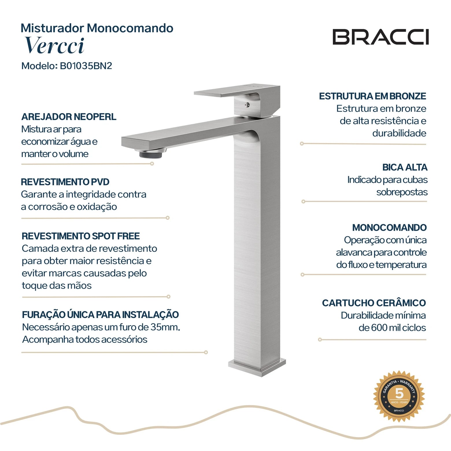 - Produto de alto padrão com garantia de 05 anos, inclusive nos componentes internos.