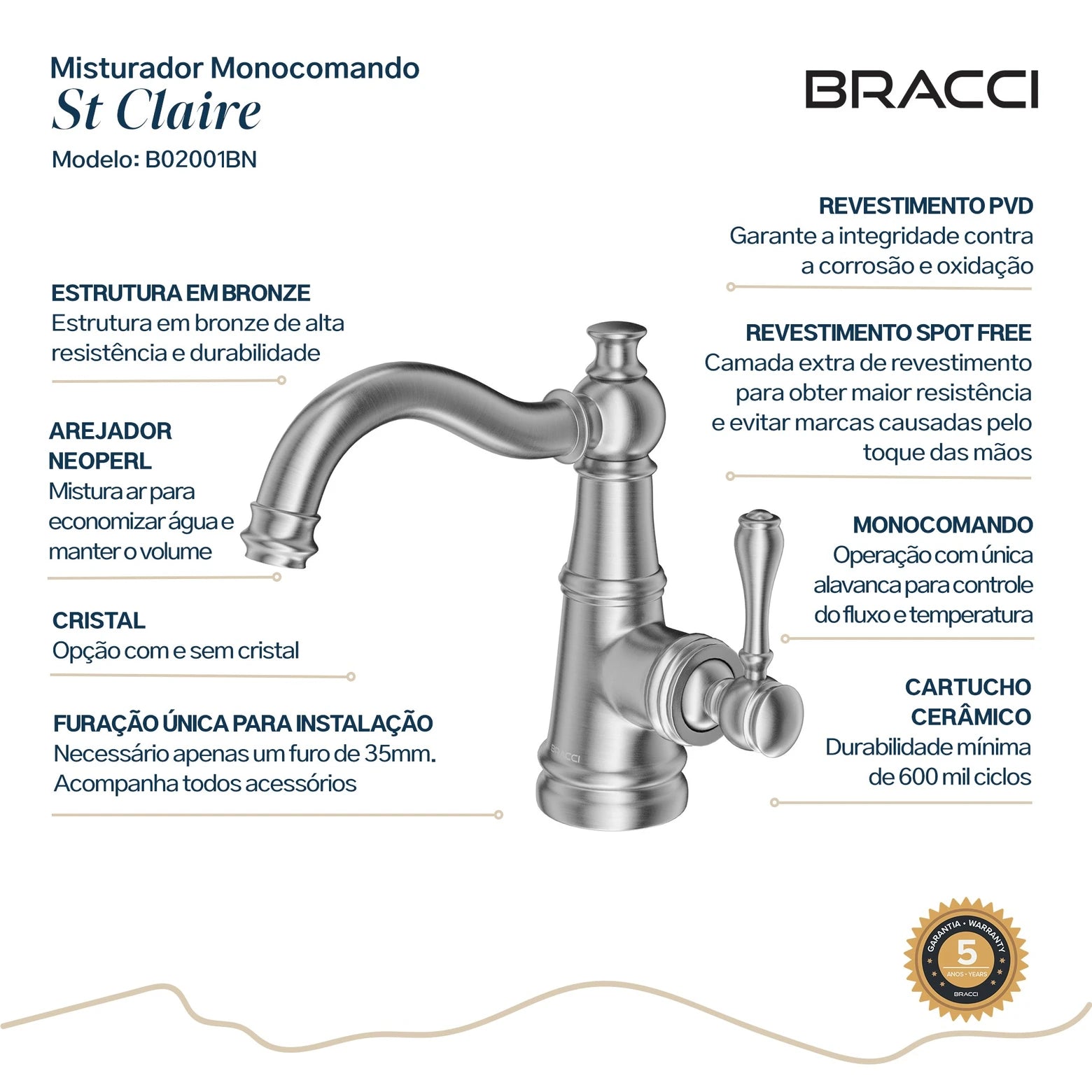 TORNEIRA MONOCOMANDO Q/F ST CLAIRE AÇO ESCOVADO
