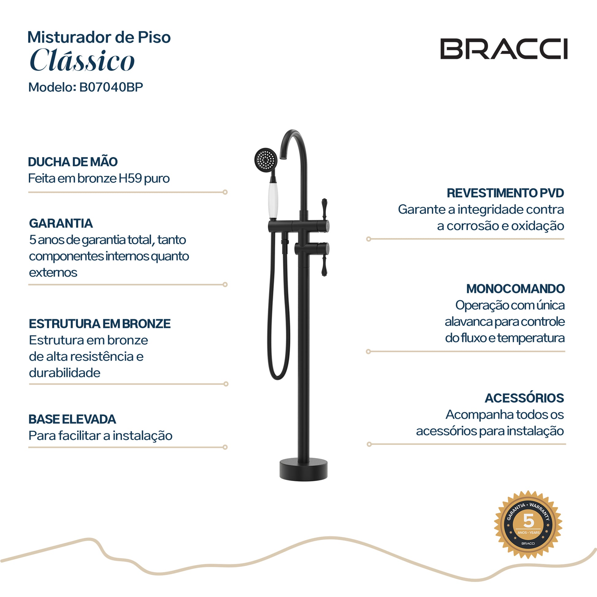 Misturador Monocomando para Banheiras de Imersão PRETO FOSCO
