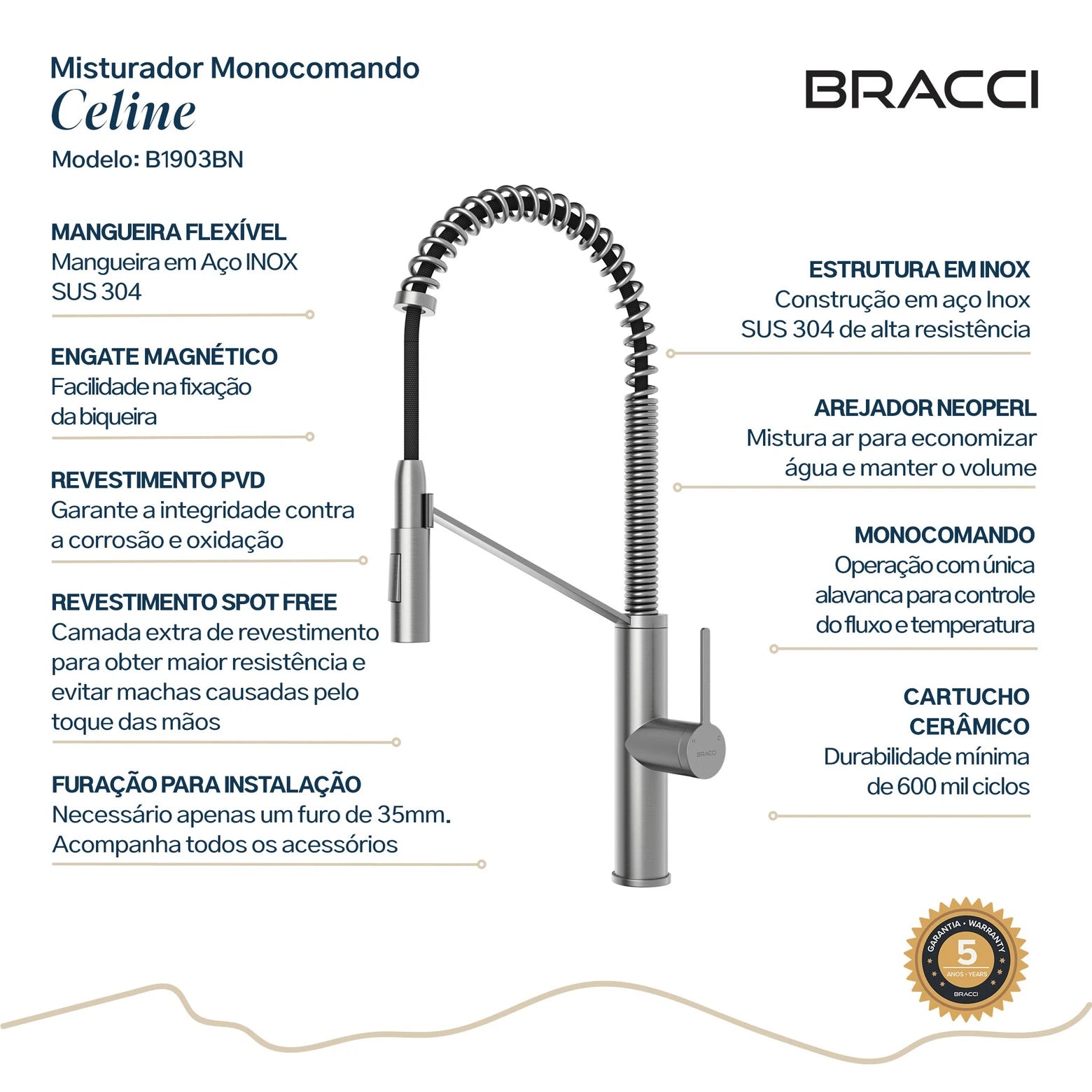 TORNEIRA MONOCOMANDO Q/F CELINE AÇO ESCOVADO