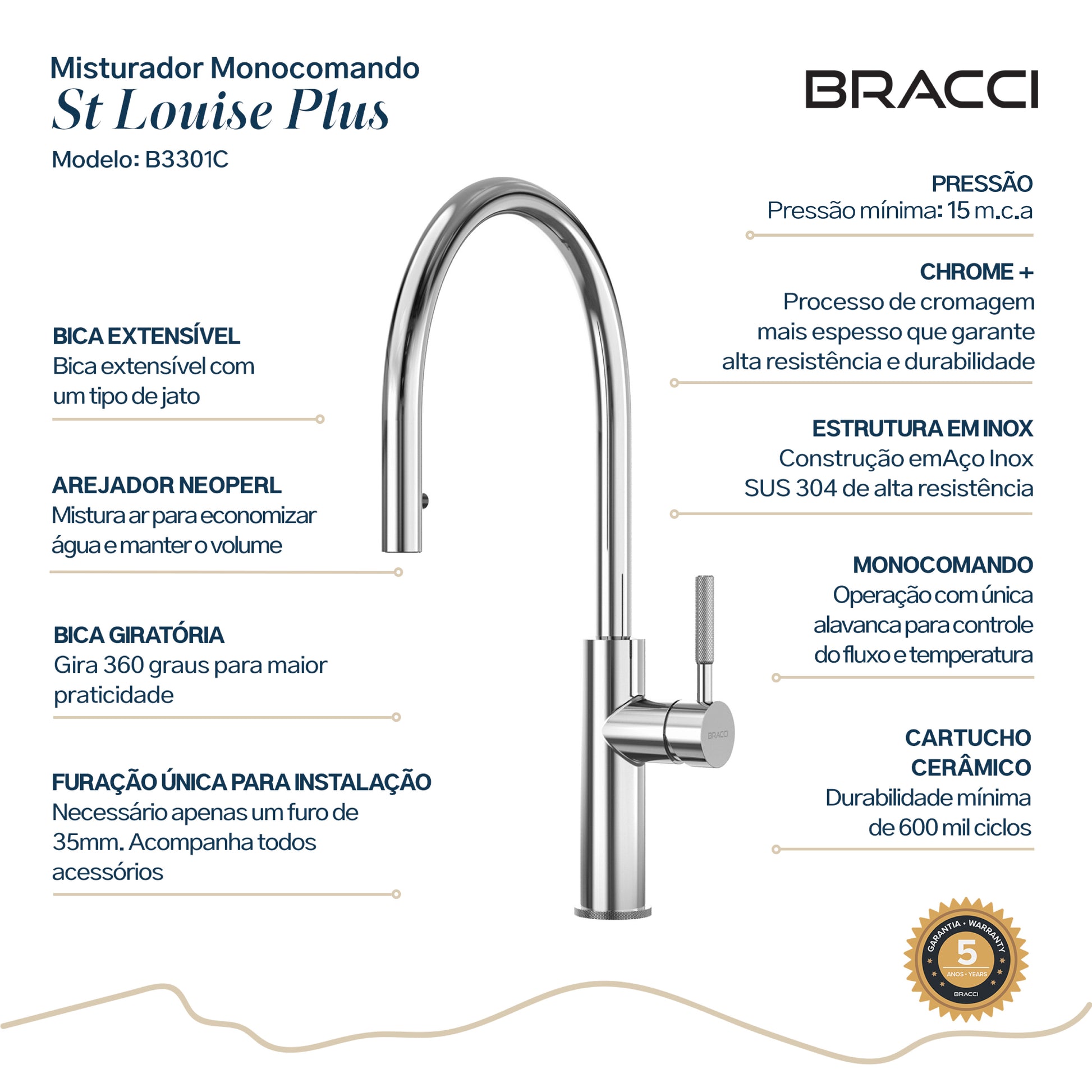 - Produto de alto padrão com garantia de 05 anos, inclusive nos componentes internos.