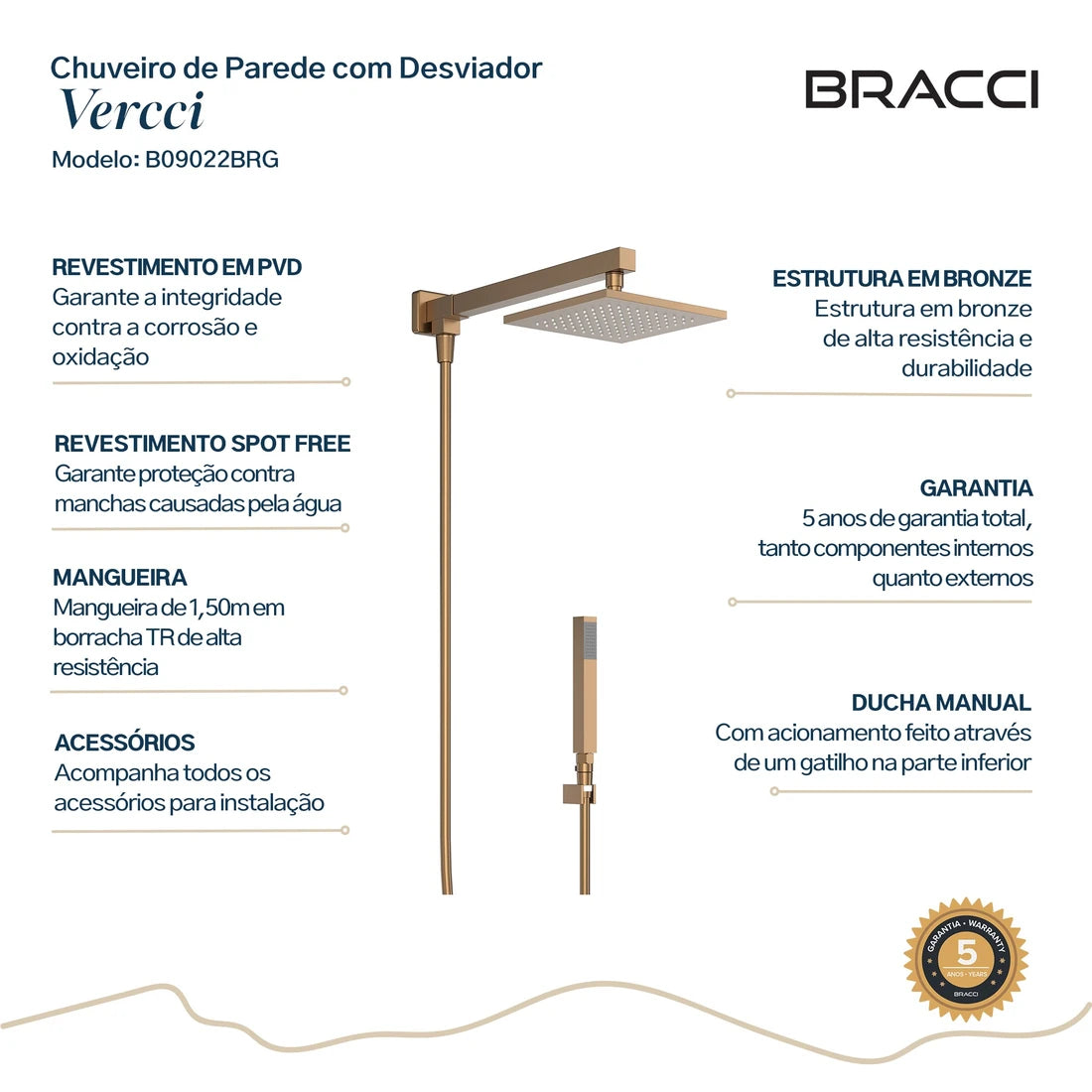 CHUVEIRO COM DESVIADOR ROSE ESCOVADO VERCCI