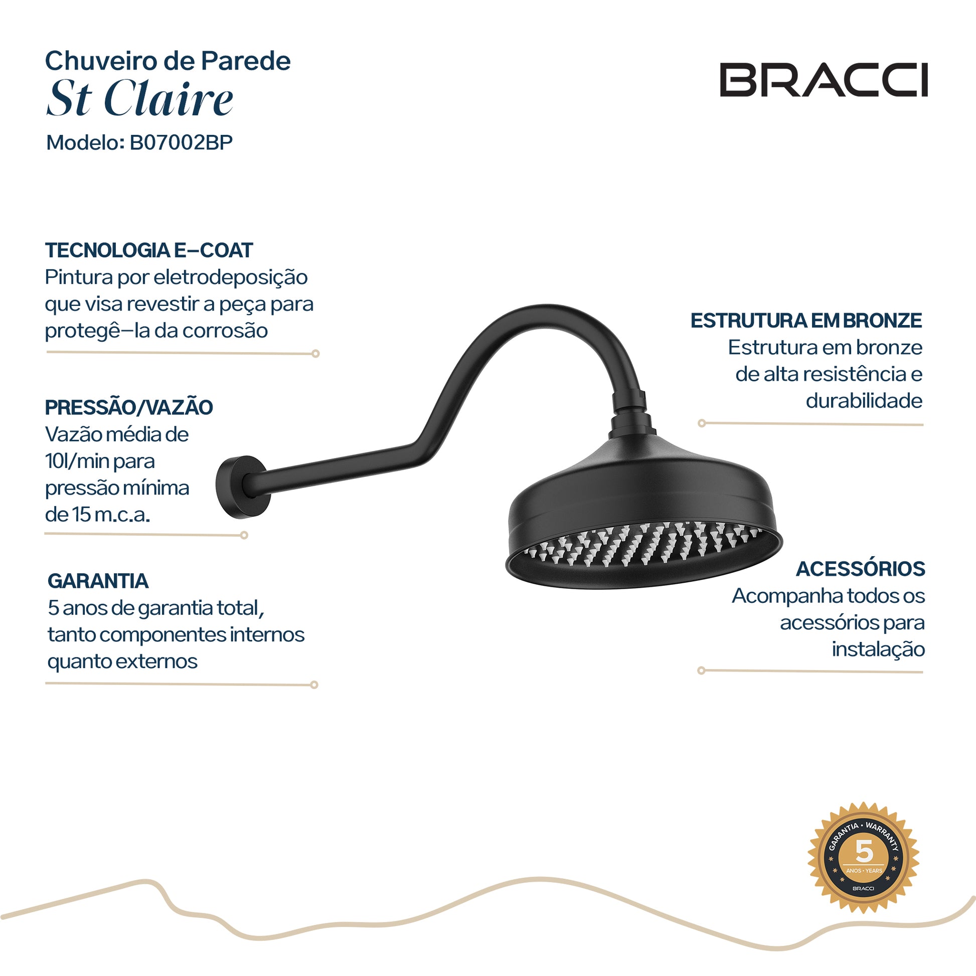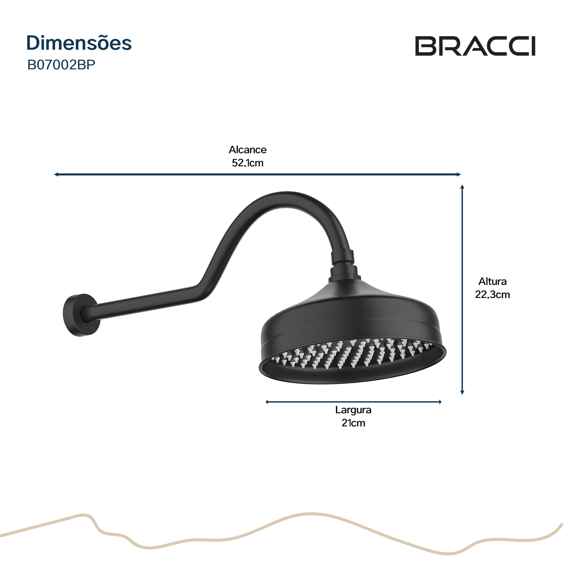 CHUVEIRO DE PAREDE PRETO FOSCO