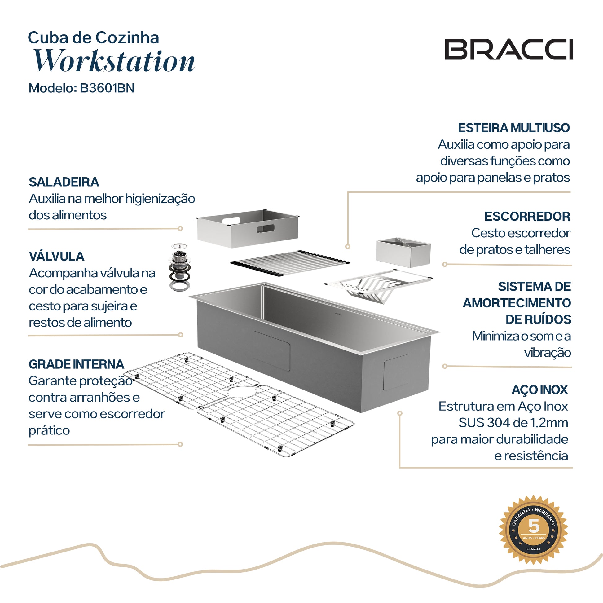 Fabricada em aço inox, material de alta qualidade, a cuba multifuncional é durável e fácil de limpar, proporcionando uma experiência culinária prática e organizada. Seja para uso diário ou em ocasiões especiais, esta cuba é a escolha ideal para quem busca eficiência e funcionalidade na cozinha.