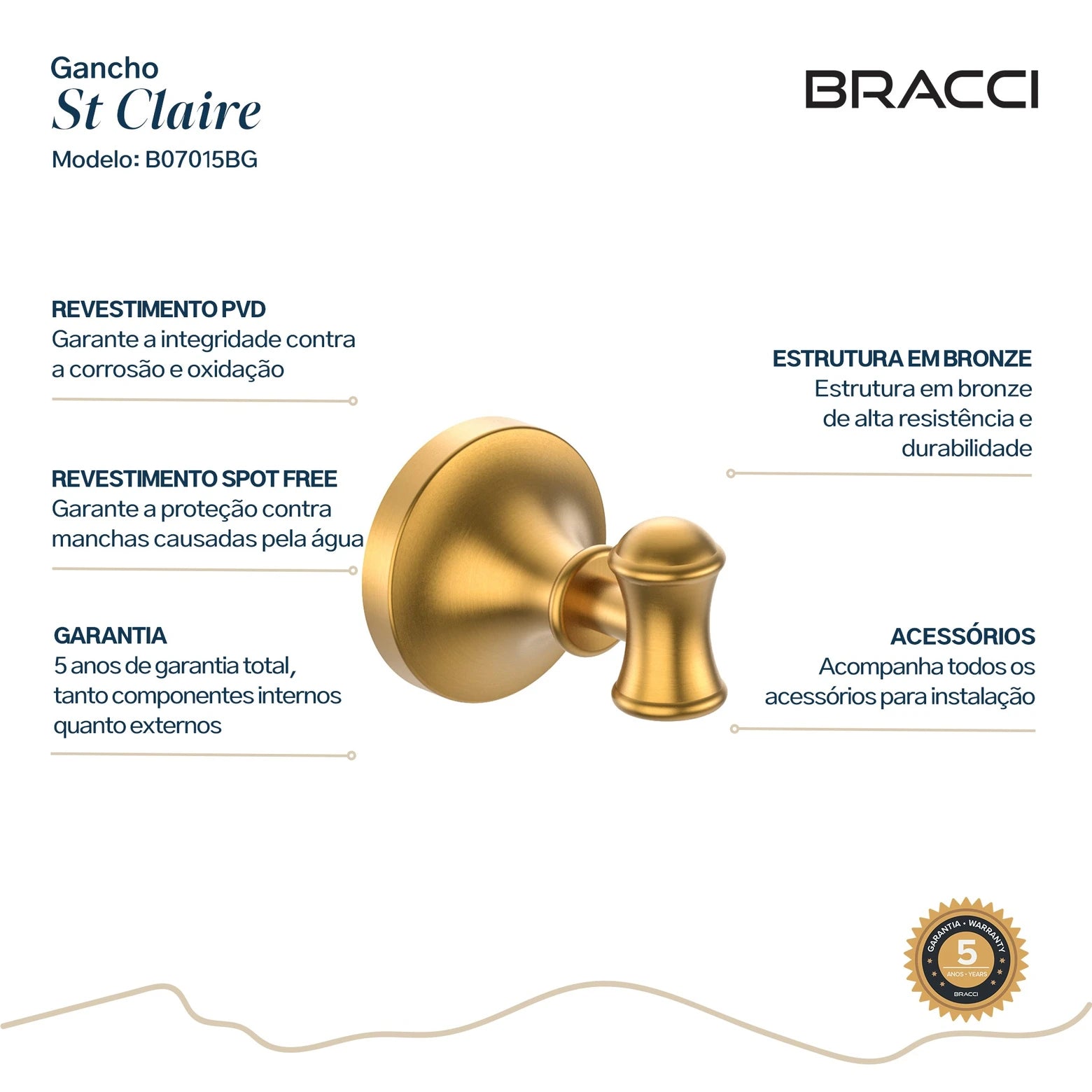 GANCHO SIMPLES ST CLAIRE DOURADO ESCOVADO