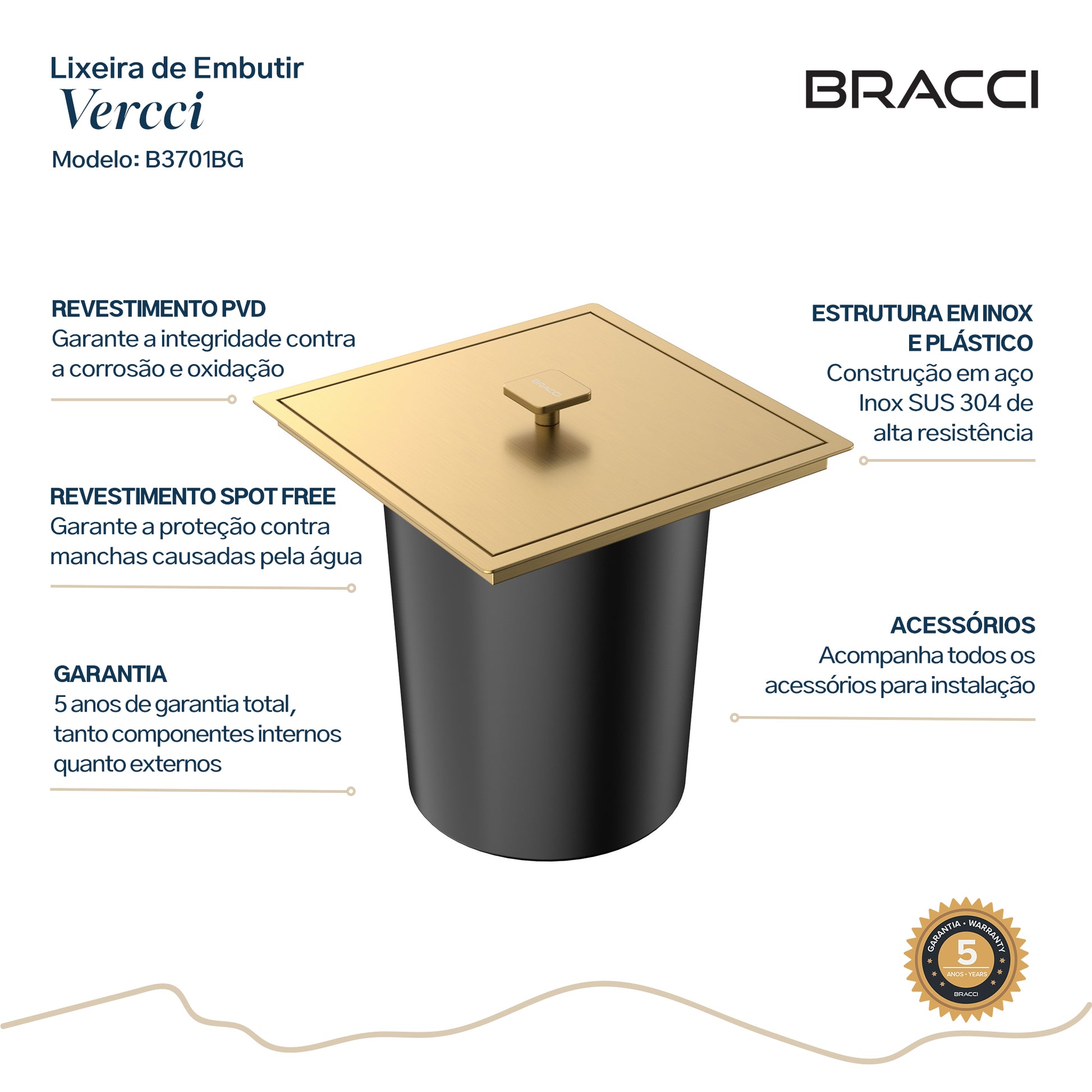 Lixeira de bancada de embutir DOURADO ESCOVADO