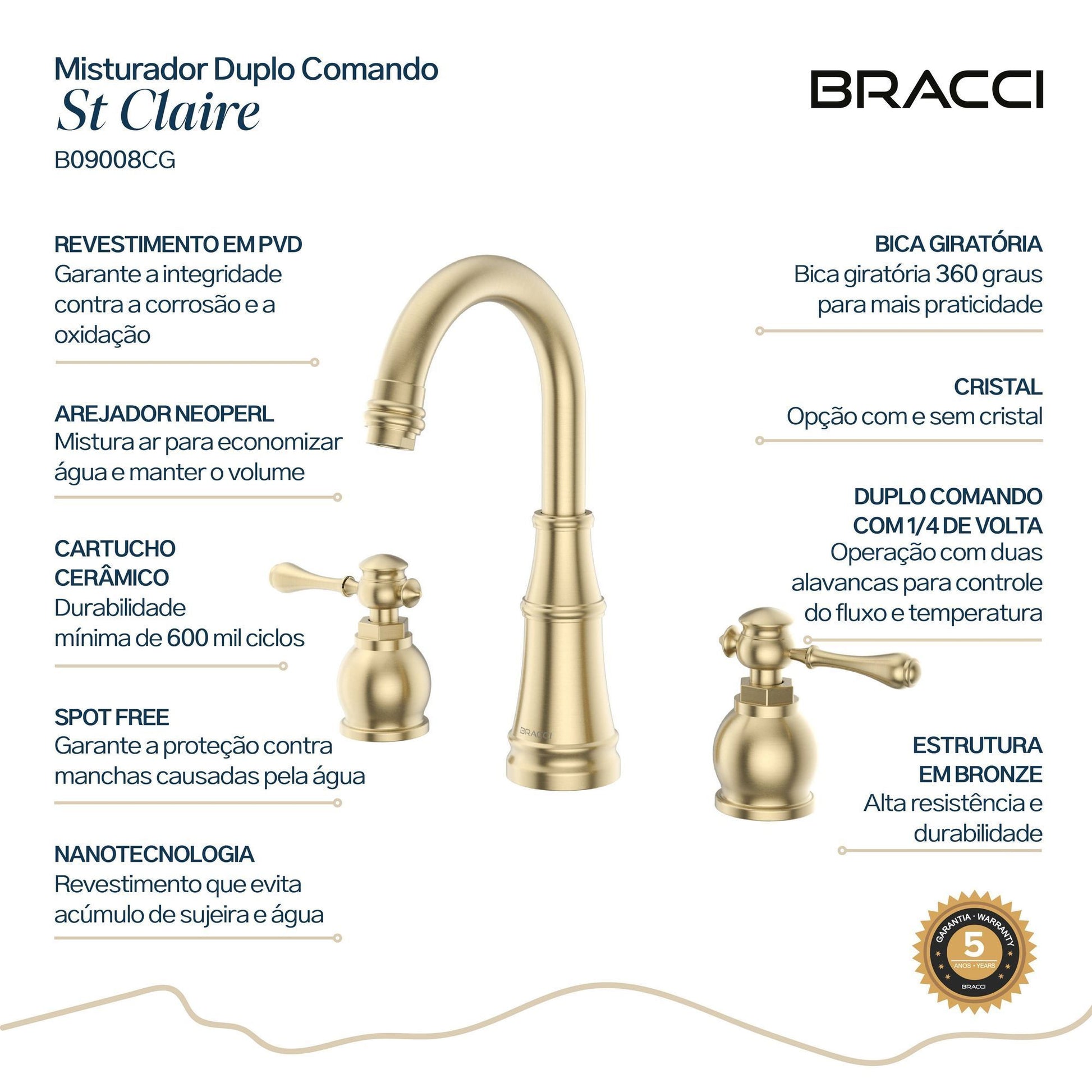 MISTURADOR DUPLO COMANDO CHAMPAGNE GOLD ST CLAIRE