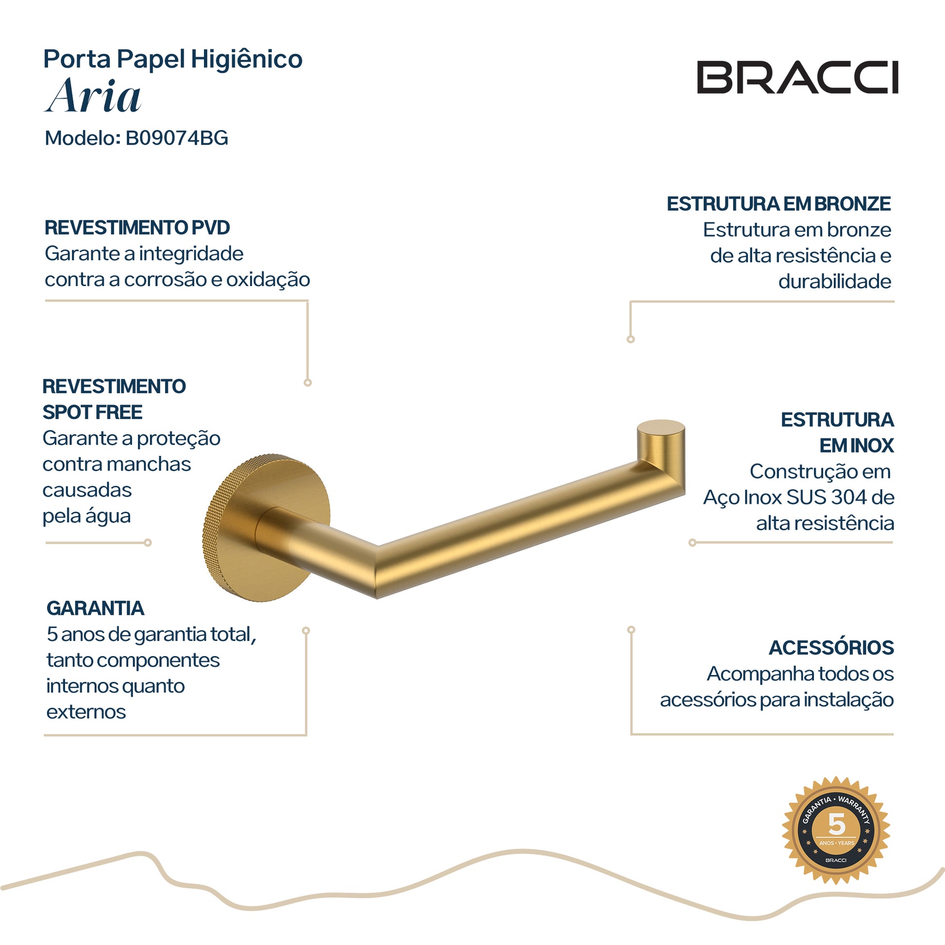 Porta Papel Higiênico Aria DOURADO ESCOVADO