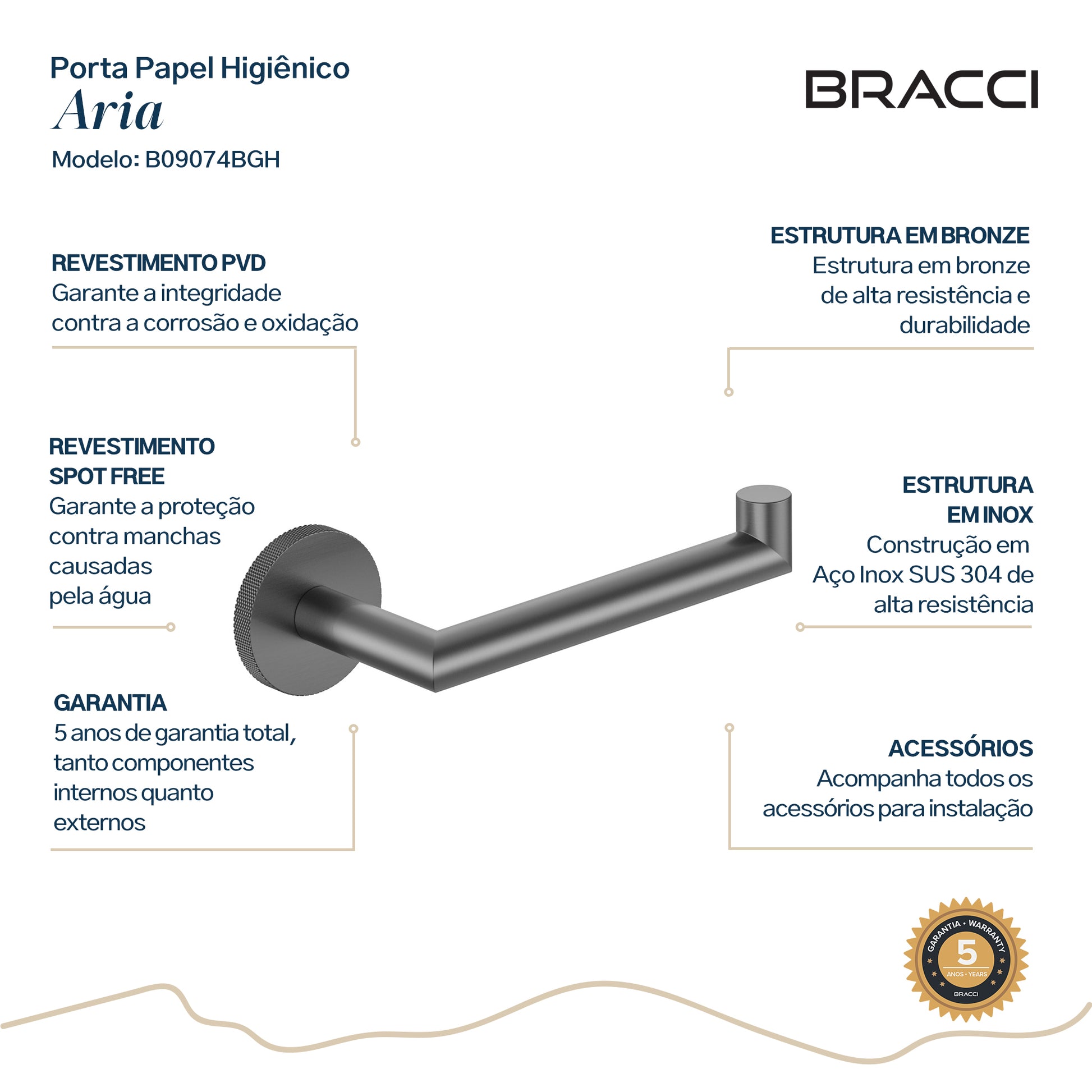 Porta Papel Higiênico Aria GRAFITE ESCOVADO