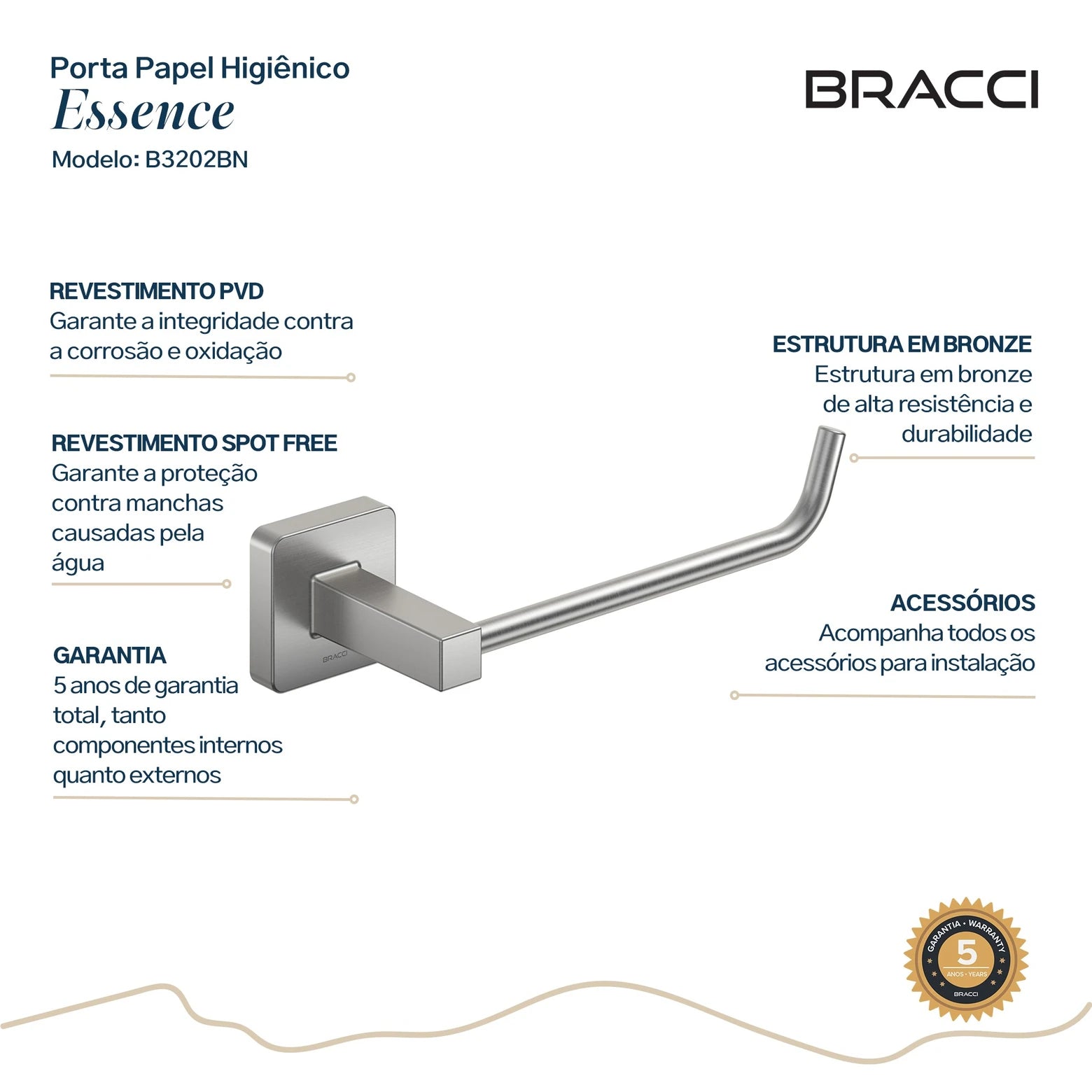 Porta Papel Higiênico Essence AÇO ESCOVADO