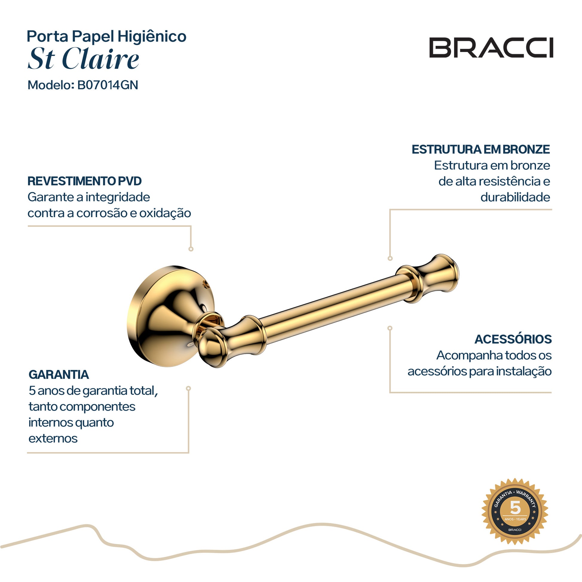 Porta Papel Higiênico St. Claire DOURADO