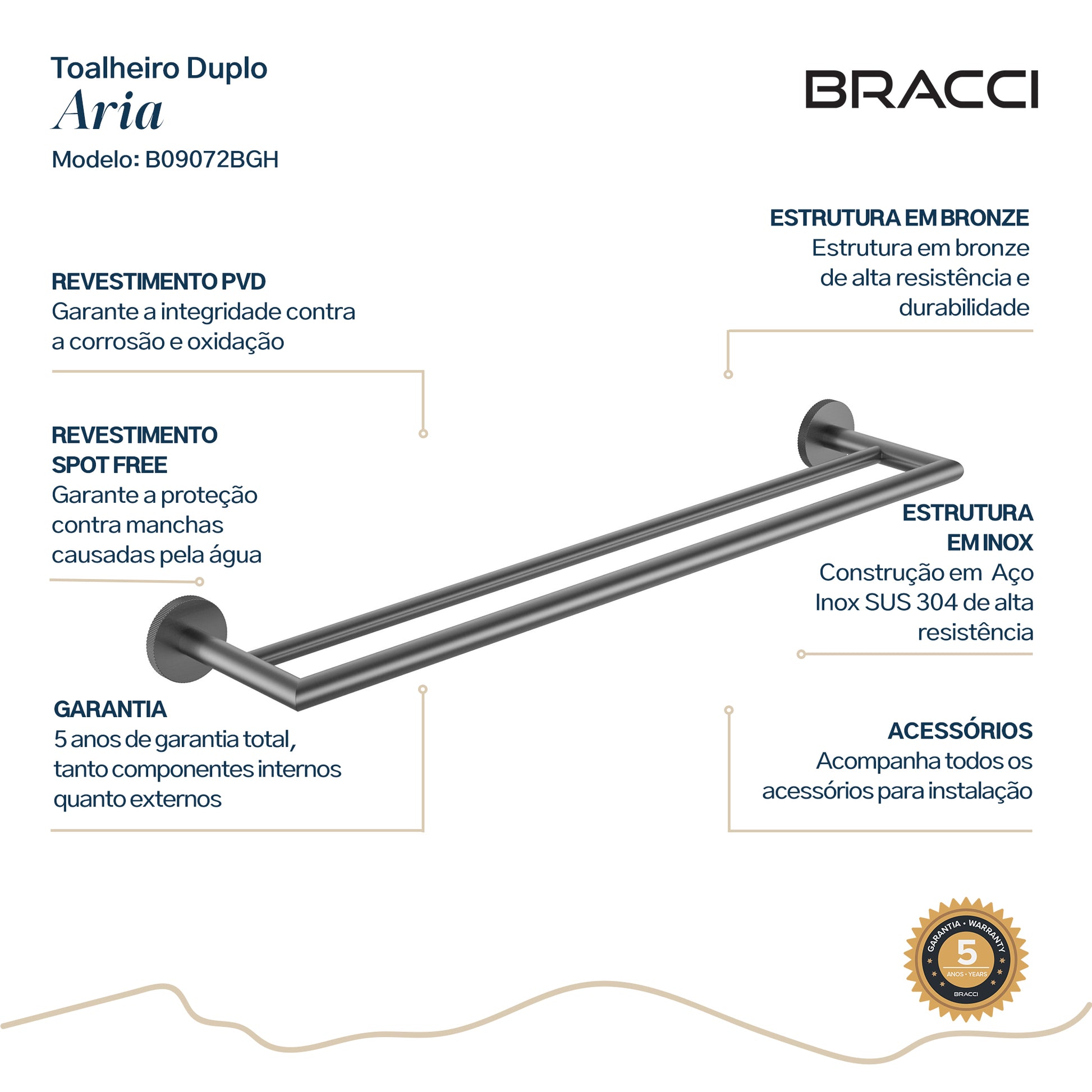 Toalheiro Duplo Aria GRAFITE ESCOVADO