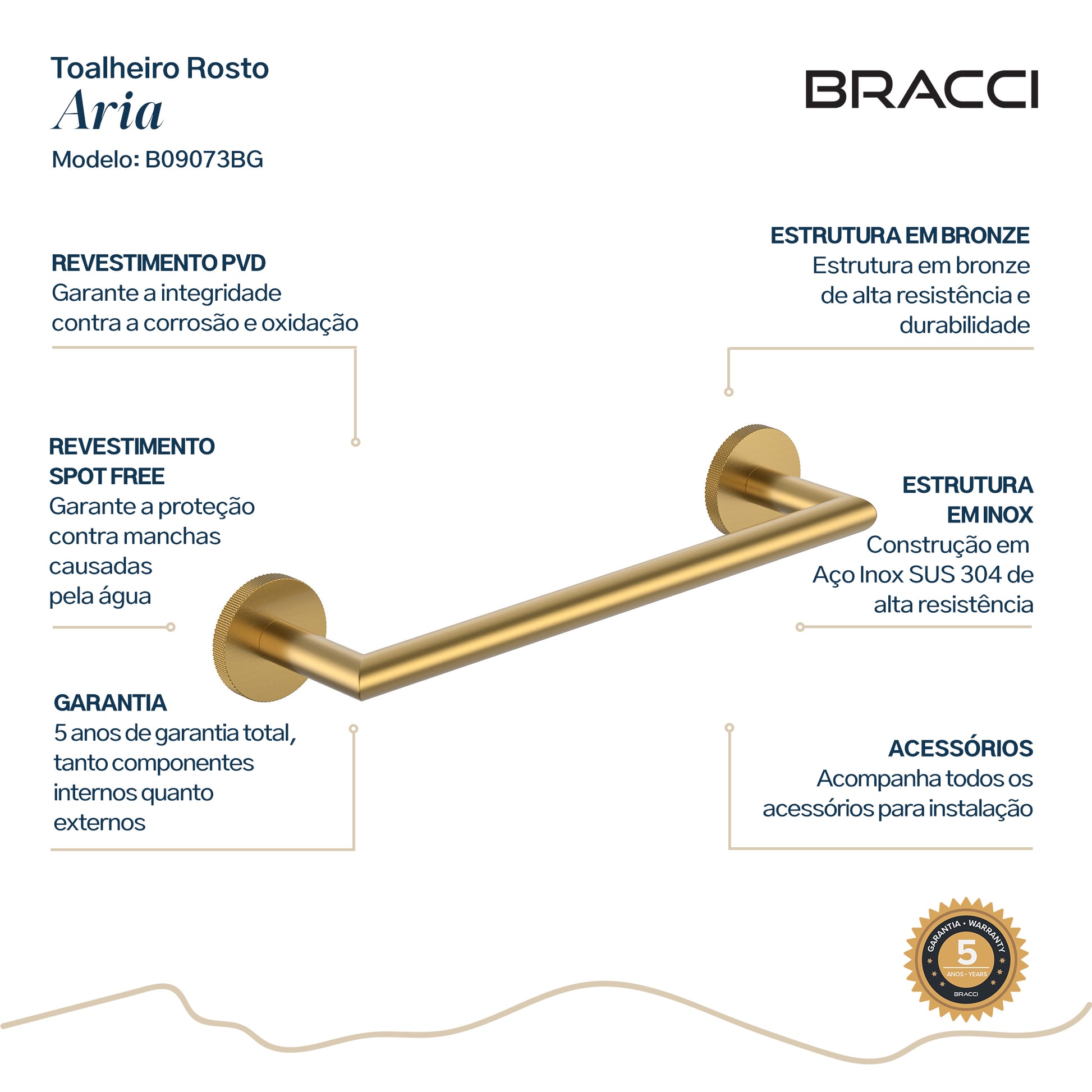 Toalheiro Rosto Aria DOURADO ESCOVADO