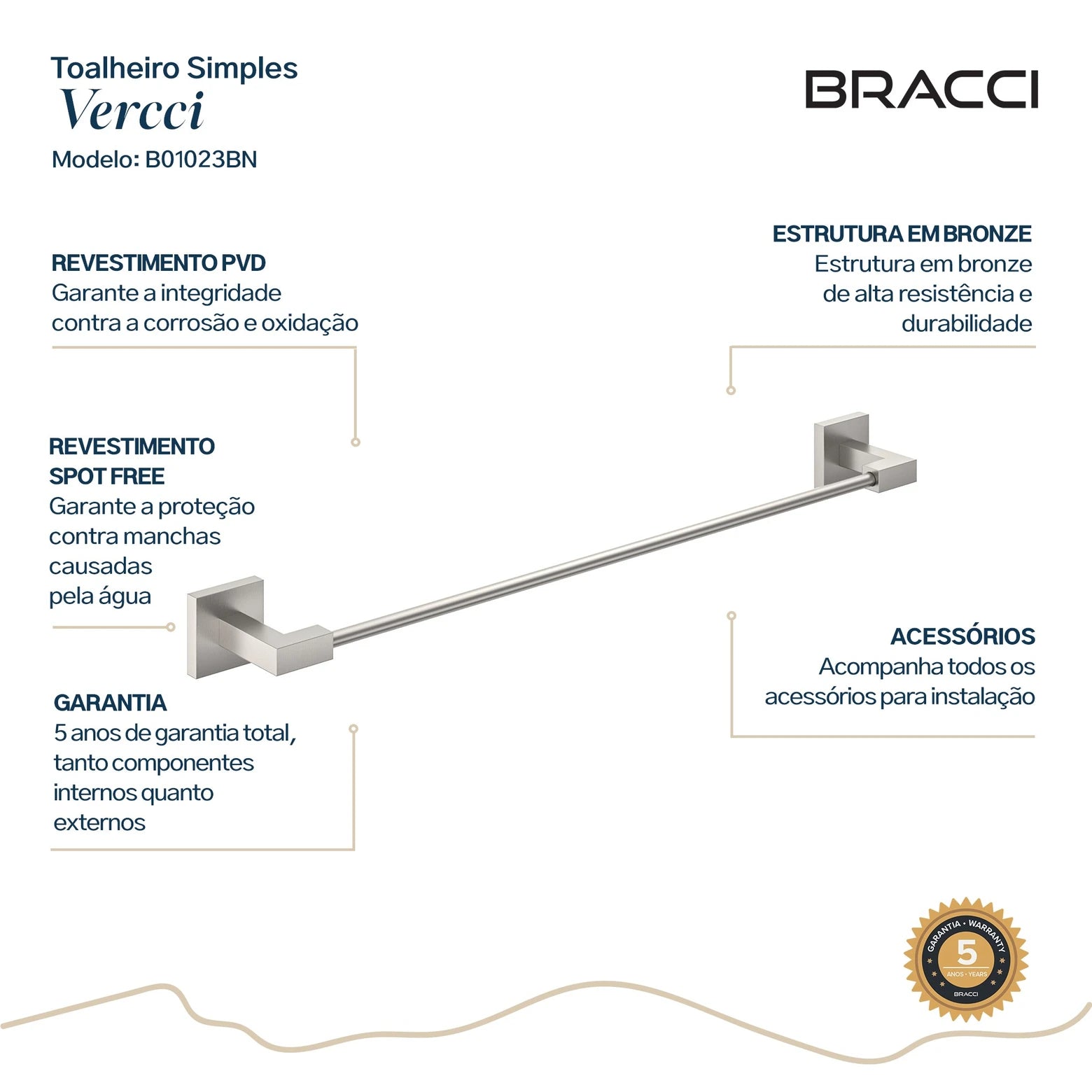 Toalheiro Simples Vercci AÇO ESCOVADO