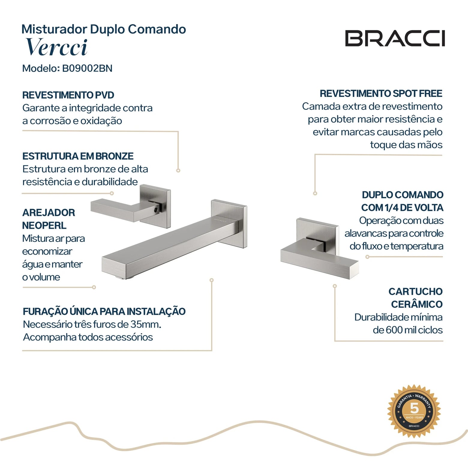 - Produto de alto padrão com garantia de 05 anos, inclusive nos componentes internos.