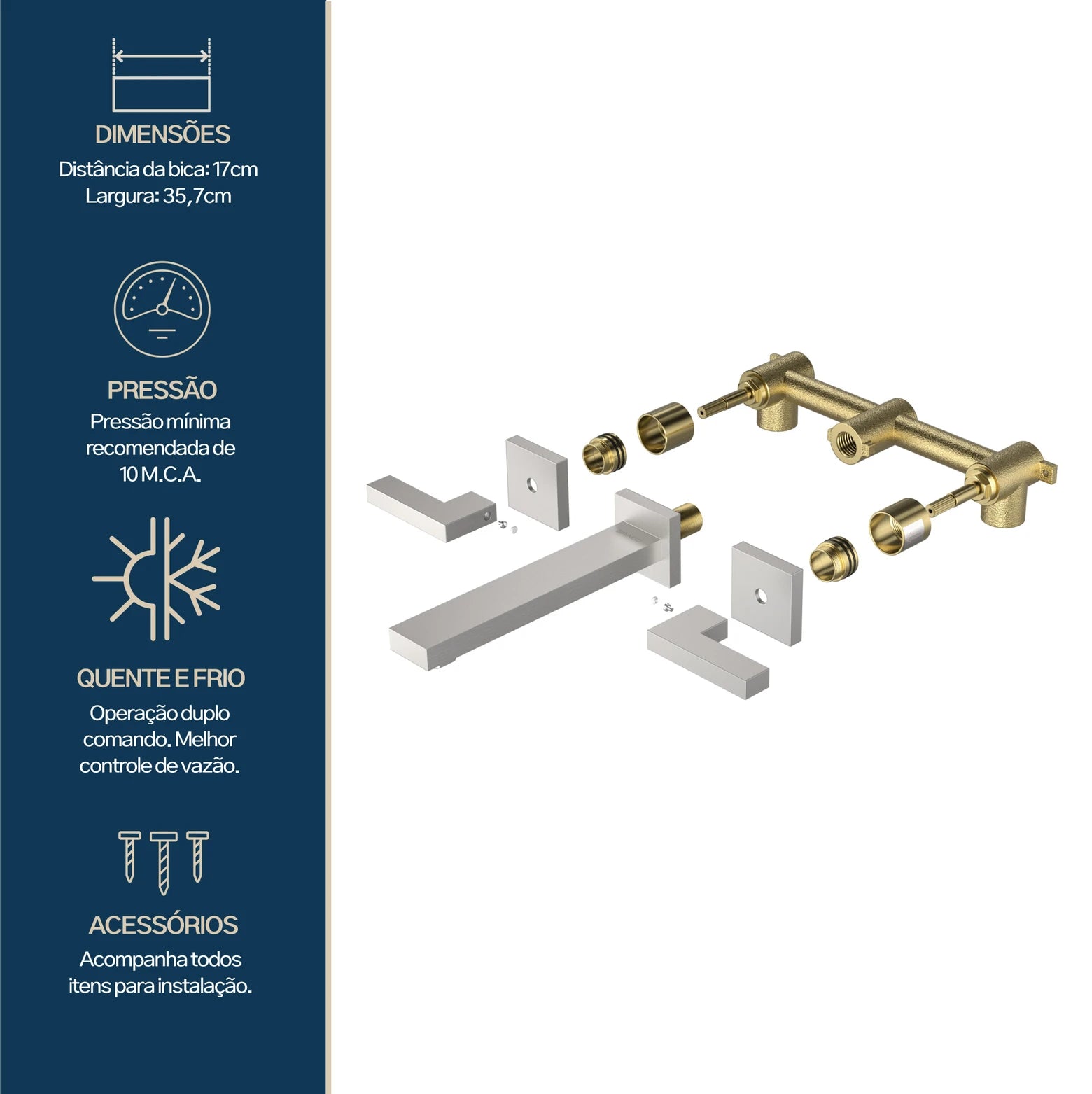 TORNEIRA DUPLO COMANDO DE PAREDE Q/F VERCCI AÇO ESCOVADO