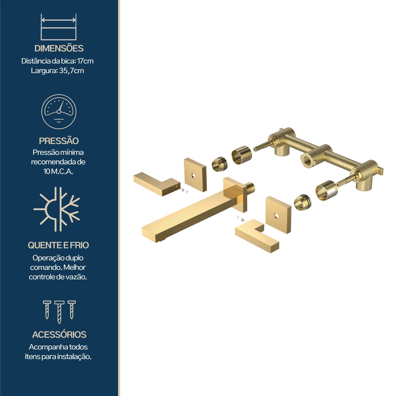 TORNEIRA DUPLO COMANDO DE PAREDE Q/F VERCCI DOURADO