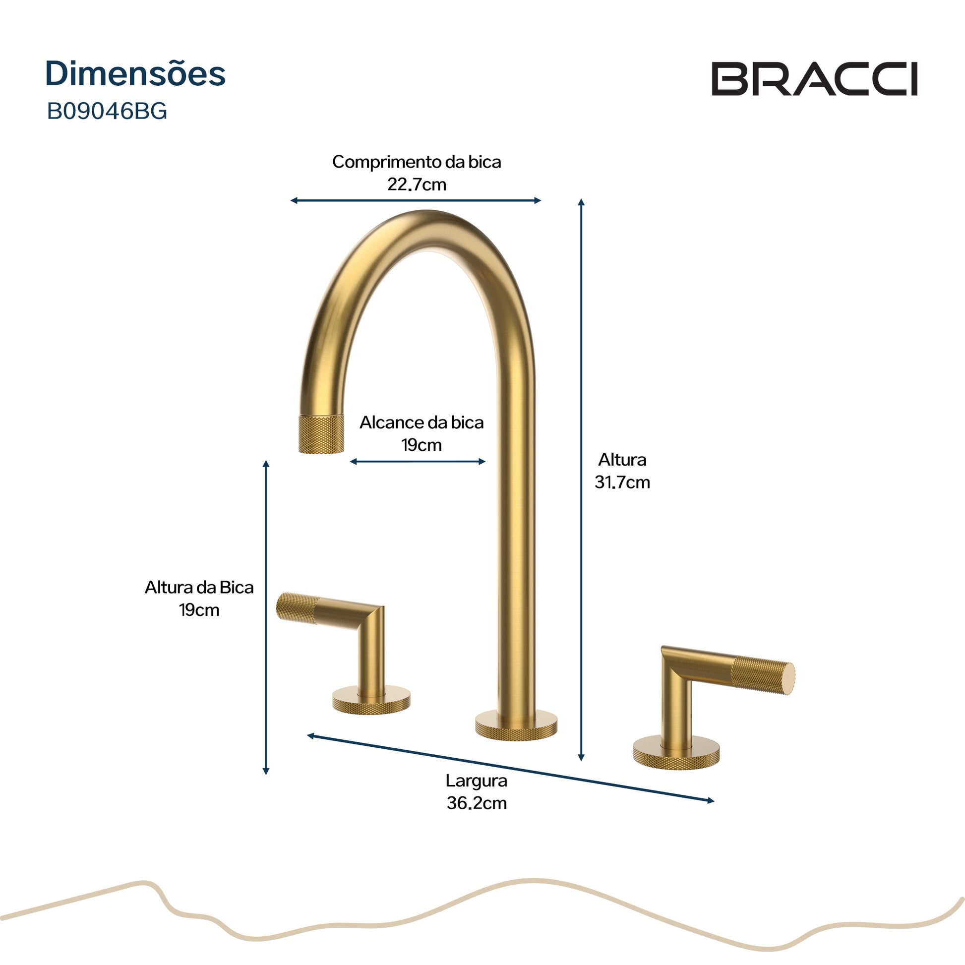 Acabamento: DOURADO ESCOVADO