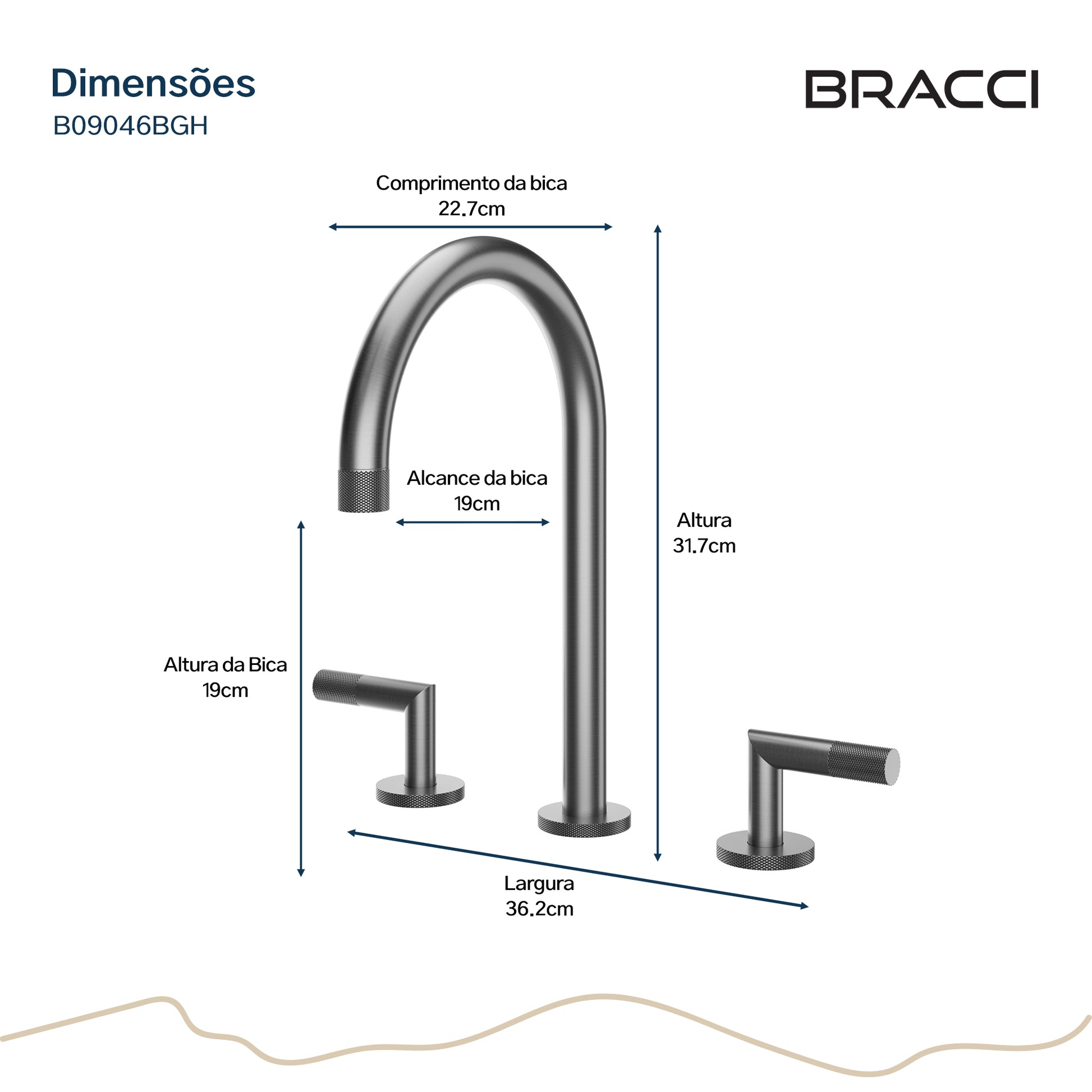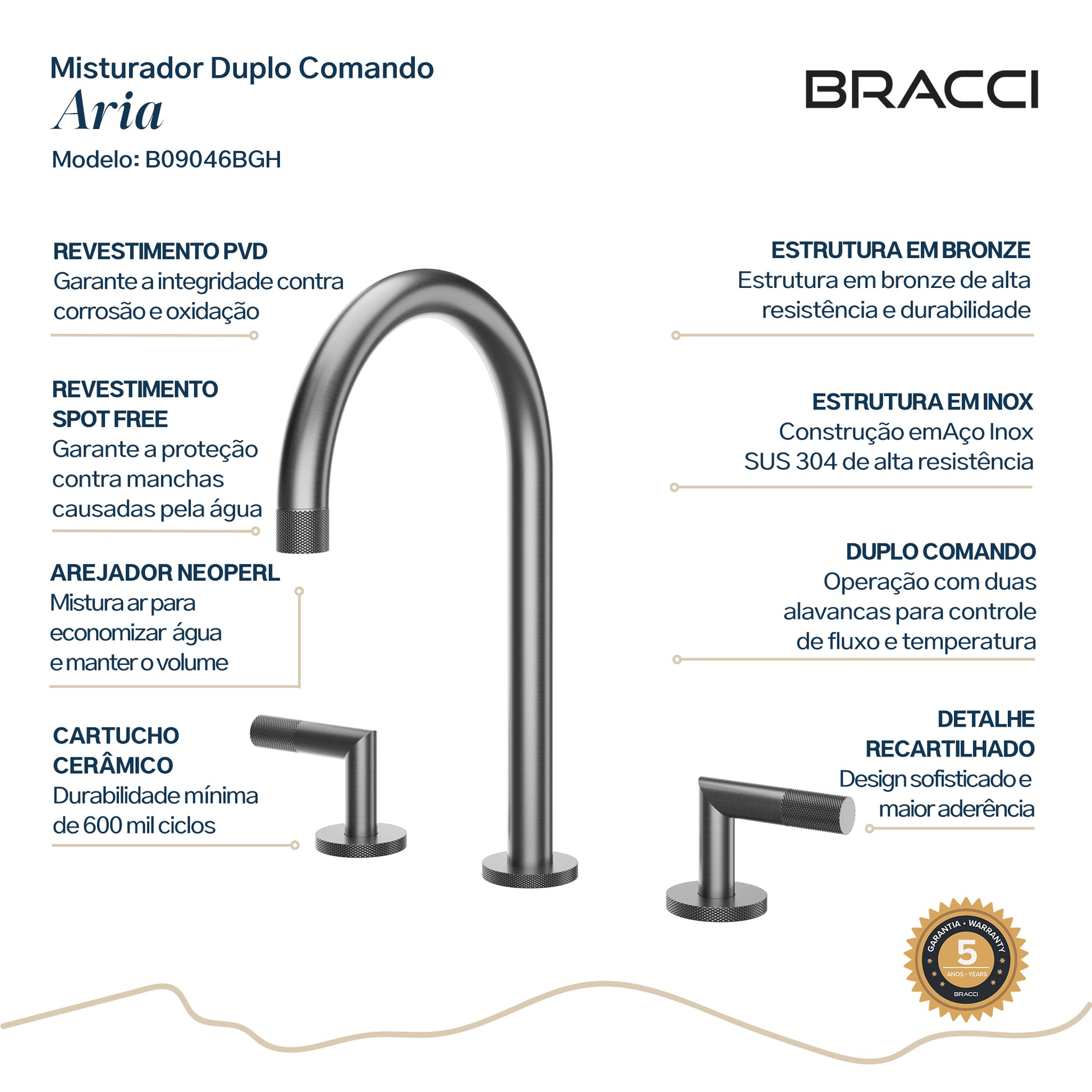TORNEIRA DUPLO COMANDO Q/F ARIA GRAFITE ESCOVADO