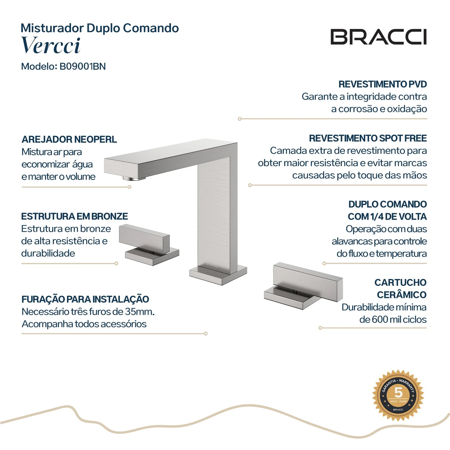 - Produto de alto padrão com garantia de 05 anos, inclusive nos componentes internos.