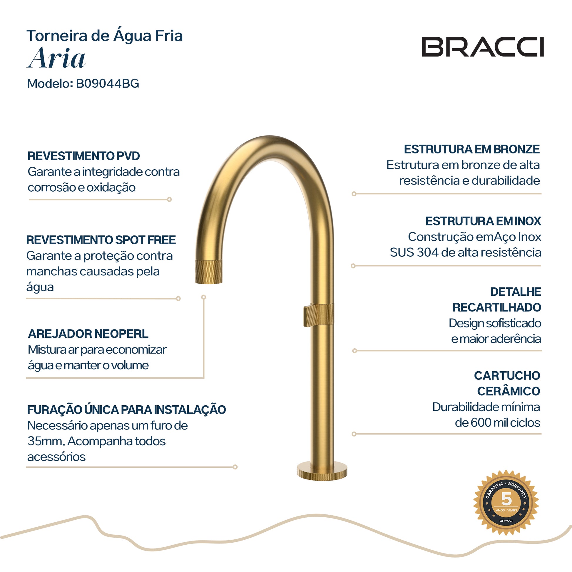 Acabamento: DOURADO ESCOVADO